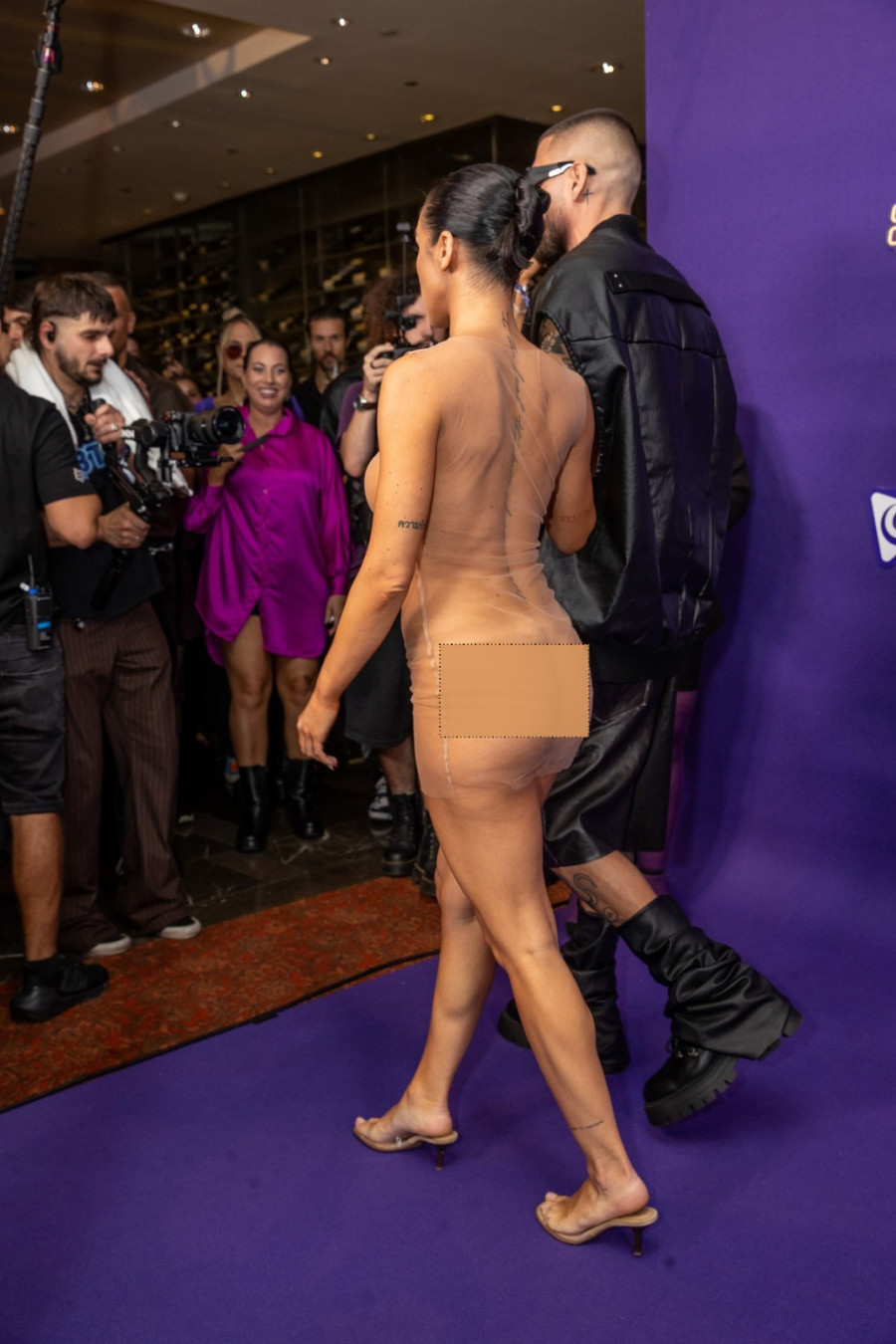 Evropska Bjanka nije samo kopirala stajling već je preuzela i prepoznatljive detalje poput zalizane kose, tamne šminke i prozirnih štikli. Njen partner je, slično Kanjeu Vestu, svojim izgledom pratio njen provokativni odjevni izbor, upotpunjujući scenu koja je podsjetila na kontroverzni par.