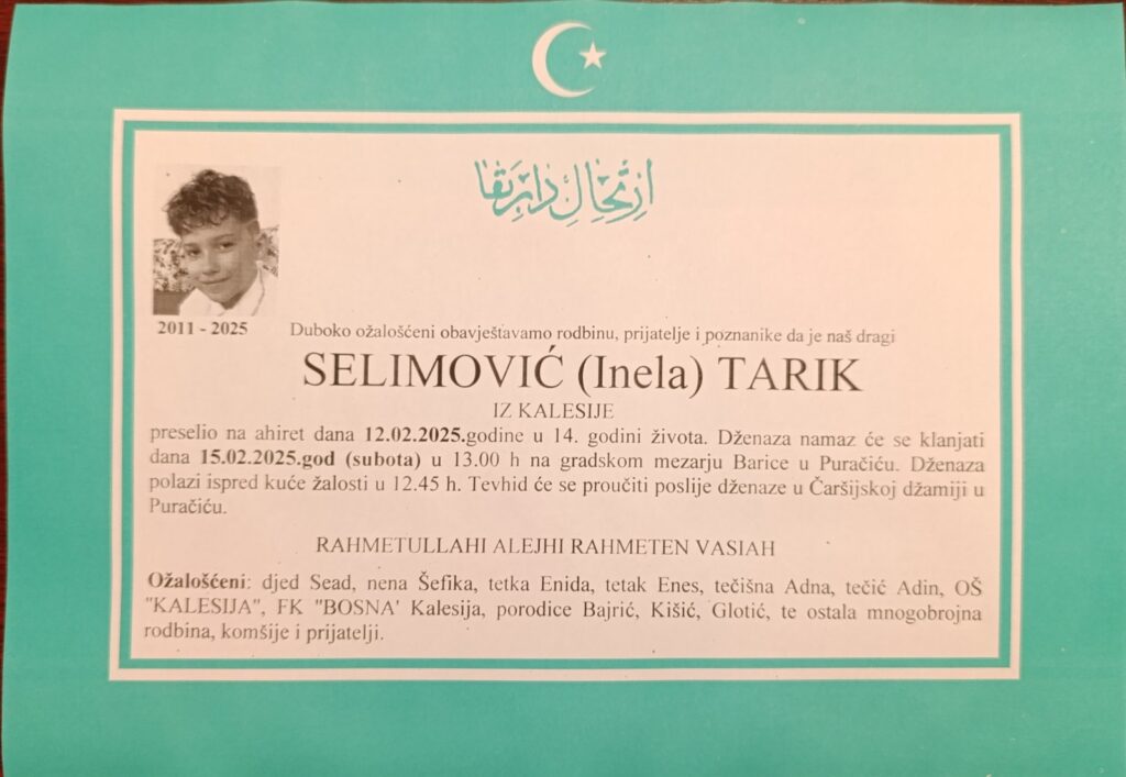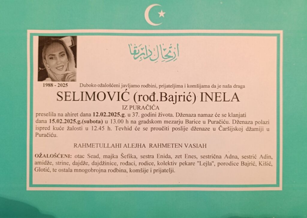 Načelnik općine Kalesija, Nermin Mujkanović, proglasio je subotu, 15. februar, Danom žalosti zbog tragične smrti Inele Selimović i njenog trinaestogodišnjeg sina.